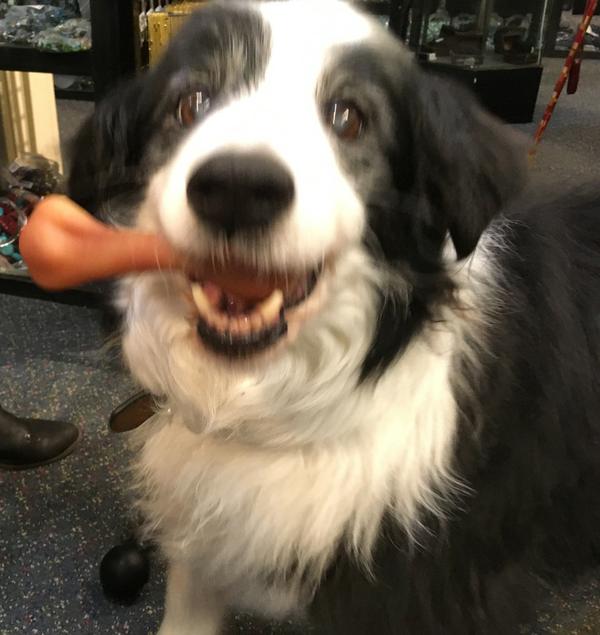 for a squeaky toy given to her by one of our special customers - she was very quick to become to a happy playful pup with her new treat - thankyou!